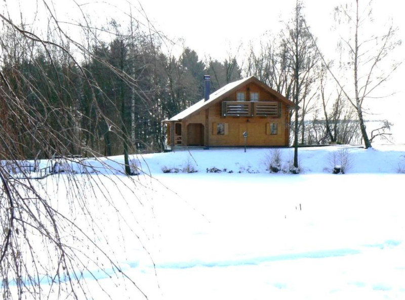 Stavba je velmi specifická tím, že stojí přímo na hrázi rybníka – dokonce se stala její součástí – je totiž podsklepená! Spodní stavba byla postavena firmou, ve které jsem zaměstnán velmi pečlivě a odolně vůči vlhkému prostředí hráze. Dodavatel vrchní stavby Delta panel s.r.o. ode mě dostal návrh domu a přesně dle výkresů byla stavba vyrobena v jejich závodě a na místě hráze kompletně smontována. Obvodové stěny mají plášť složený z nosných fošen o tloušťce 45mm skládaných na dvojité pero - drážku. Vzniklá dutina mezi nosným vnitřním a venkovním pláštěm je vyplněna 120mm minerální izolace.