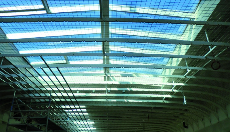 „Odrazovým můstkem pro naši práci byla historická ocelová konstrukce, do které zámečnická firma navařila nosné profily.", uvedl majitel Rupert Pagitsch. „Jak výroba prvků, tak i přeprava a montáž se pro nás staly výzvou. Fotografie konstrukce, zpracování a i připojení na zeď mluví samy za sebe. Nejprve jsme vyměřili celou budovu a vytvořili 3D simulaci, která se stala základem pro veškeré přípravné práce. Opravdovou výzvou pro náš tým byla výroba konstrukce na stávající profily. Po celé ploše jsme museli konstrukci doplnit o dřevěné prvky tak, aby se vytvořil přesný základ pro klenby ve stropní části a v přechodech do stěn. Samozřejmě musela být konstrukce postavena tak, aby nenarušila celkový koncept. Bylo zapotřebí zohlednit stovky okolností a největší lahůdkou byly trojdimenzionálně tvarované klenby, které probíhaly v oblasti zlomů. Další potíží byla realizace zakřivených dvouvrstvých prvků. V kombinaci s velkorozměrnými otvory jsme museli navrhnout unikátní technologická řešení, která byla pro nás doposud neznámým územím. Podíváme-li se na výrobu prvků detailněji, bylo primárně zapotřebí vyřešit jeden zásadní problém. Slepí-li se dvě desky, vzniknou dva různé poloměry. U desek s otvory, které budou později ohnuty, tak hrozí nebezpečí, že se otvory zvětší. Každá deska byla proto jednotlivě přiříznutá, dvojitě zalepena, ohnuta a teprve poté frézována. Vyfrézovat do sádrovláknité desky otvory s průměrem až 30cm nepatří k našim každodenním úkolům. Sádrovláknité desky FERMACELL se v tomto případě ale výborně osvědčily. Cením si jak samotné výrobky, tak i spolupráci s jejich výrobcem. Deska je velice homogenní, což bylo velmi důležité především u zaoblení.Umístit rastr s otvory na desky tak, aby bylo co nejméně řezů, bylo dalším problémem, který jsme museli během výroby vyřešit. Dalším přáním architektů bylo, aby otvory v zaoblení působily pro pozorovatele elipticky. Bylo zapotřebí, abychom tento požadavek v našich výpočtech zohlednili."