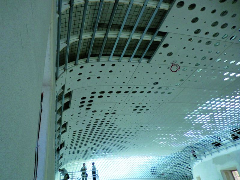 Aby bylo možné tuto architektonickou vizi zrealizovat, byl grafický návrh vyřešen jako rastr s otvory a tento návrh byl postoupen specialistům na sádrovláknité systémy - firmě Pagitsch. Samotná realizace si vyžádala nejen úzkou spolupráci všech účastníků, ale před velkou výzvu postavila zkušené odborníky firmy Pagitsch.