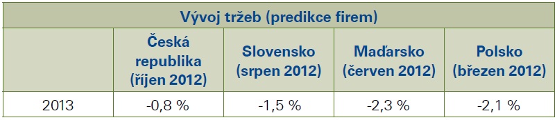 V důsledku negativního výhledu pro stavebnictví v roce 2013, zůstávají i predikce poklesu tržeb stavebních společností. Tržby by v příštím roce měly klesnout jak ve velkých, středních tak i v malých firmách. Stabilizace by mohla přijít v roce 2014, kdy je zatím očekáván mírný růst tržeb.