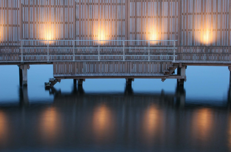 Lázně jsou navrženy jako poněkud netradiční rámec pro nejrůznější sportovní aktivity. Je zde prostor pro klidné večerní koupání stejně jako pro cvičení a hry. Všechny platformy dohromady tvoří 870 metrů čtverečních dřevěné terasy, 70 metrů čtverečních je pak zázemí šaten a 90 metrů čtverečních provozní budova na pevnině.