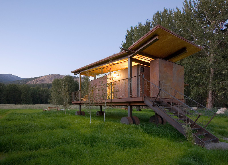 „V Sun Valley jsem viděl baskické domky na kolech, které vypadaly jako zakryté vagóny, které si lidé zaparkovali na svém pozemku, aby v nich mohli ubytovat návštěvy," říká Tom Kundig a částečně objasňuje původ svého nápadu. K tomuto plánu přispěla i skutečnost, že pozemek byl určen pro 14 obytných rekreačních přívěsů, což umožnilo Kundigovi zkonstruovat domky na kolech a získat pro ně povolení jako pro rekreační vozidla. „Podvozky" umožňují zvednout obytné jednotky tak, aby se otevřel výhled na okolní krajinu v rozsahu 360 stupňů. Dalším aspektem je zachování přirozeného terénu louky a určitě také způsob, jak se bránit pravidelným jarním záplavám na horské louce. Každá z těchto funkcí odhaluje společnou touhu architekta i majitele vytvořit vysoce udržitelný a neinvazivní ekologický vývoj.