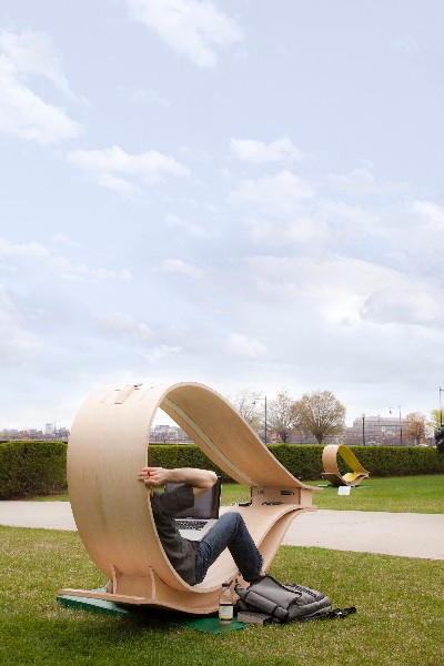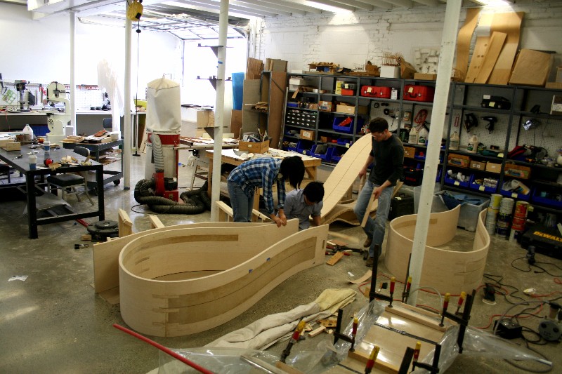 Sama konstrukce lehátka je součástí programu, který zkoumá výrobní technologie zpracování rychle rostoucích měkkých dřev, která se obvykle v architektuře nevyužívají. KVA studio nedávno získalo mezinárodní ocenění za nový způsob ohýbání dřeva, jenž je také součástí digitální výuky na místní univerzitě. K vytvoření souvislé klenuté konstrukce využívá moderní parametrické 3-D modelování a robotické výrobní rameno, aby každá část tenké tvarované překližky přesně zapadla do druhé. Tuto technologii zpracování dřeva ve spojení s flexibilními solárními panely studentské architektonické studio už úspěšně aplikovalo také v návrhu a při realizaci obytného sídliště.