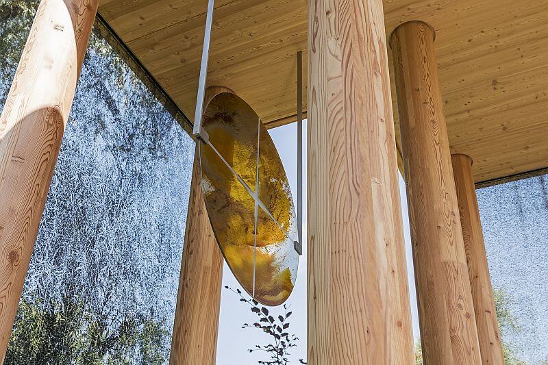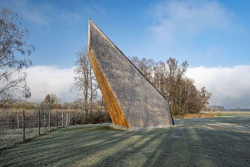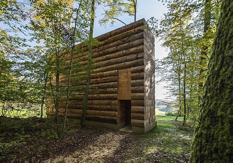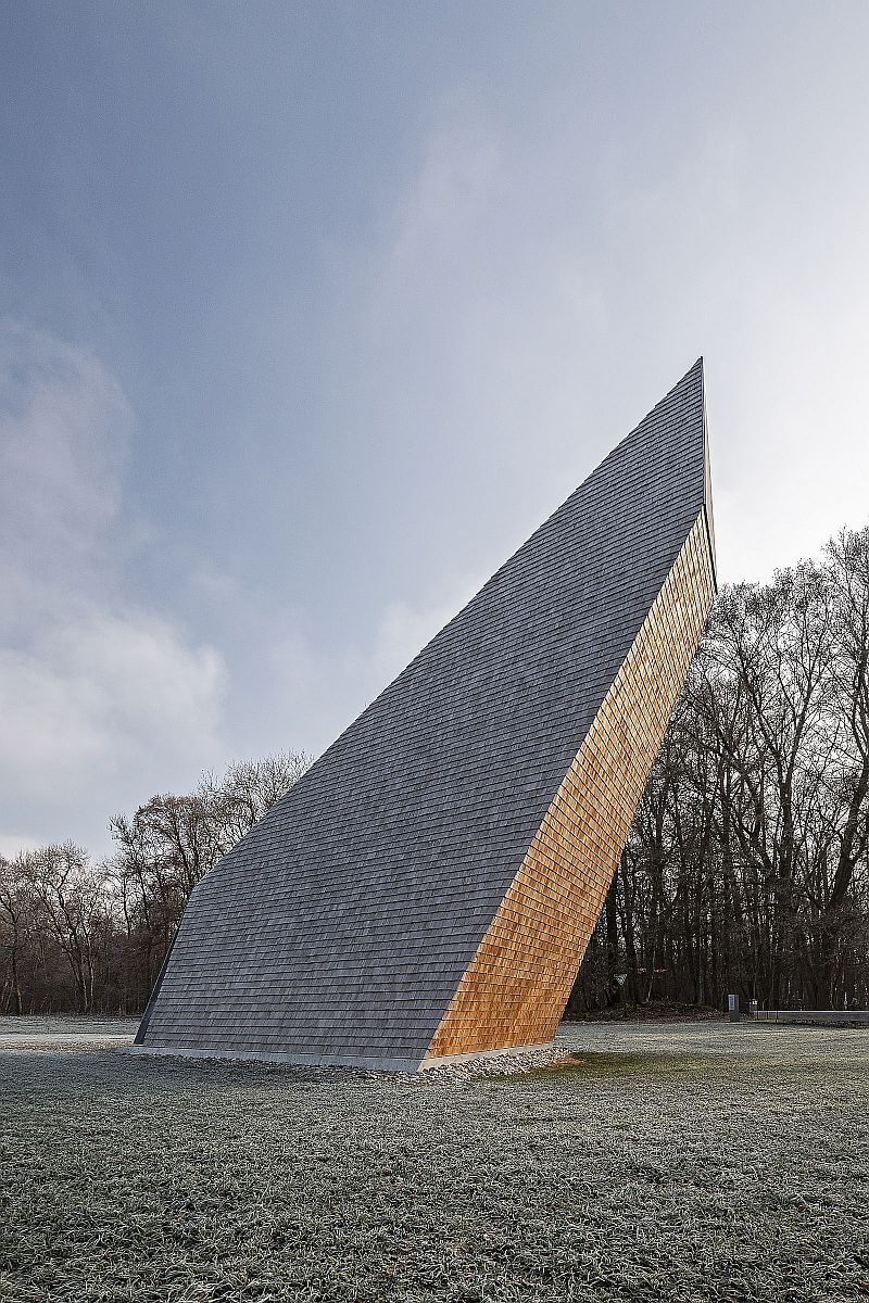 Stavba vysoká 12 metrů je koncipována tak, aby se časem stala součástí dorůstajícího lesa. Jeho protipólem je uzavřený, silně sakralizovaný interiér prosvětlený výhradně modře prosklenou střechou vytvářející hru světla a stínů na stěnách. Modrá je zde symbolem touhy po spojení s nebem a zároveň božské pravdy.