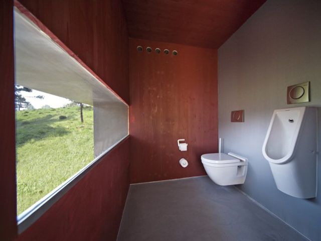 Němečtí architekti ze studia Berschneider + Berschneider dokázali, že i tak dokonale utilitární stavba jako WC může vzbudit náležitou pozornost médií a odborných kruhů. Na golfovém hřišti v Lauterhofenu totiž nechali vyrůst prostý domek s toaletou, který kombinuje ocel a dřevo.