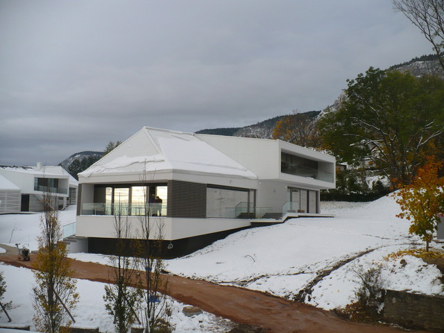 Rakouský architekt Christian Prasser navrhl objekt o rozloze přes dva tisíce metrů čtverečních, který sice mohl být postavený z klasických cihel či betonu, ale nakonec jej realizovala firma RD Rýmařov se svými sendvičovými panely. "Ukázalo se, že jsme schopni akceptovat náročné podmínky evropského projektu v rámci filozofie grün z hlediska moderní architektury, ekologie, energií a podobně. Ale museli se sejít osvícený investor, který byl v tomto případě z Velké Británie, architekt, který trval na svých vizích, a firma, která je ochotna podstoupit rizika," míní obchodní ředitel RD Rýmařov Jiří Pohloudek. Moderní středisko nabízí 28 apartmánů, fitness, velkou kongresovou a menší školicí místnosti pro výcvik vyššího managementu nadnárodních společností, jako je třeba Nestlé.