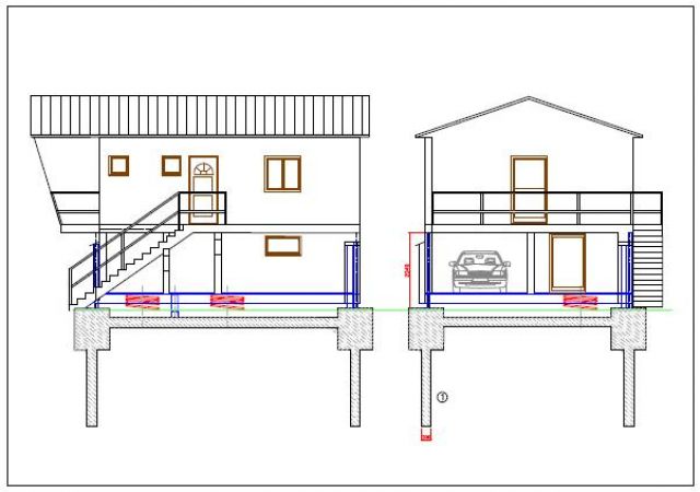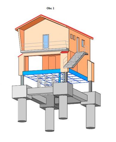 Jednoznačnou odpovědí pak bylo řešení, které naše firma ve spolupráci se specializovanou firmou MV Technik vyvinula. Jeho řešení je svou ideou velmi jednoduché a v tom je jeho přednost. Princip spočívá v tom, že tradiční základ stavby je nahrazen jednoduchou konstrukcí pomoci propojených pilotů a na úrovni terénu zakončených patkami. Tradiční základová deska je nahrazena kovovou svařovanou konstrukcí staticky vypočítanou pro nosnost dřevostavby. Kovová základová deska je propojena zdvihacím a vodícím zařízením s betonovým základem. V případě hrozícího nebezpečí lze jednoduše stavbu vertikálním směrem vyzvednout a zcela ji ochránit proti zaplavení až do výšky hladiny 2,3m. Zařízení je vyvinuto jak pro přízemní, tak pro podlažní domy, u nichž se počítá i s tím, že v přízemí je počítáno s garážovým stáním. Při záplavě pak lze vyzdvihnout celou stavbu včetně osobního vozu mimo dosah vodní hladiny. Jelikož podlahu u vícepodlažní stavby na úrovni kovové základové desky tvoří kovovové podlahové rošty, jejich očista po případném zaplavení vyšší vlnou než 2,5m nad úrovní patek (2,7m nad terénem) je naprosto jednoduchá. Voda jednoduše proteče roštem, případné bahno se opláchne a tím je veškerá očista skončená. Po opadnutí vody se zkontroluje zdvihací a vodící zařízení, očistí se náplava pod stavbou a domek se spustí na své původní místo.Zdvihací zařízení je jištěno i pro případný výpadek el. proudu nouzovým el. Zdrojem případně mechanickým tak, aby došlo k vyzdvižení stavby i při výpadku proudu. Je pamatováno i na zajištění vyzdvižení stavby v případě nenadálého příchodu záplavové vlny. U přízemních staveb typu bungalov je pak podlaha na nosné kovové základové desce řešena jako vodovzdorná konstrukce se samostatným zateplením a hydroizolací.![]()