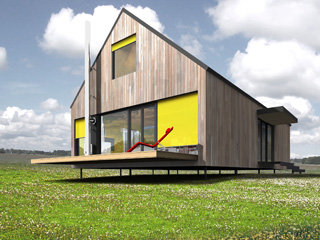 Tento nový prostorový koncept se studio Prodesi rozhodlo podtrhnout také volbou technologie. Vybralo si proto takovou, která mu umožnila použít naprosto minimalistické řešení celého obvodového pláště dřevostavby. Skladba obvodových stěn je tak jednoduchá, že ji tvoří pouhé tři vrstvy. Vnitřní povrch a zároveň nosnou konstrukci tvoří pohledové masivní vícevrstvé panely, které jsou zaizolovány vnějším kontaktním systémem s tenkovrstvou omítkou. Alternativou je samozřejmě volba dřevěného obkladu. Dřevěné elementy jsou vyráběny z šetrně obhospodařovaných lesů a dřevo pochází z drtivé většiny z Čech.