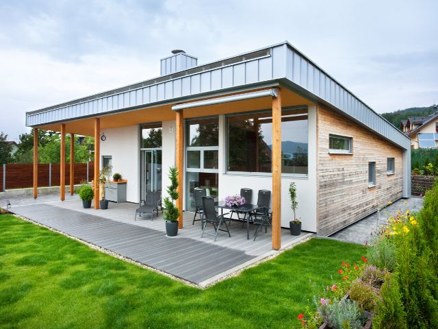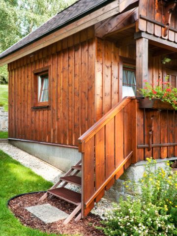 Ačkoliv tak na první pohled trochu vypadá, není to ale jednoduchá letní chata, nýbrž dokonale zateplená dřevostavba, disponující všemi parametry moderní stavby určené ke stálému bydlení. Chata tak dokonale „klame tělem". Zatímco bungalov s pultovou střechou se nebojí kombinací s kovem a vidíme tady typické bohaté prosklení, chatička se drží tradičního tvarosloví i jednoty materiálu. Malá okna jsou klasicky dělená a na stavbu navazuje dřevěné zábradlí. „Starobylý" dojem umocňuje volba tmavší lazury.