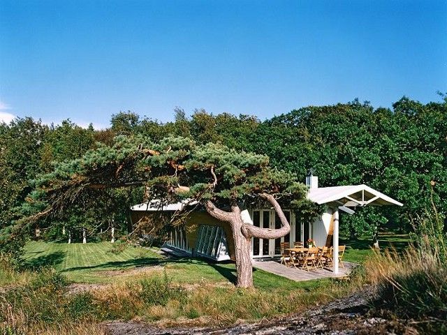 Projekt svou podstatou propojuje různá přírodní prostředí a současně vytváří přechody mezi nimi. Dům je tak předělem mezi dubovým lesem a pláží, samotný les přitom působí jako izolovaná zahrada. Dominantou před bílým průčelím je fantaskně zprohýbaná stará borovice. Na ni je krásný pohled z vedlejší dřevěné terasy. Místnosti domu jsou uspořádány od východu k západu, od zadních ložnic přes jídelnu, kuchyni až k prosluněnému obývacímu pokoji; poklidný životní rytmus v domě se řídí vlastně podle dráhy slunce.