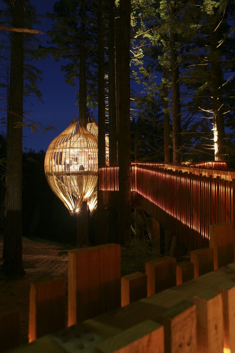 Domky na stromě jsou snem snad každého malého dítěte, velkou inspirací tak byla pro architekty hlavně říše fantazie, která se ale samozřejmě musela přizpůsobit funkčním požadavkům. Forma kavárny připomíná kuklu, ze které se líhne nádherný motýl,v noci se promění v kouzelnou lucernu, maják, napůl zamaskovaný lesem, který září do noci. Do hlavního těla restaurace, jež nabízí dostatek místa pro 18 návštěvníků a bar, vede 60 metrů dlouhý přístupový chodník, jež je v noci rafinovaně osvětlen a jež je sám o sobě zážitkem.