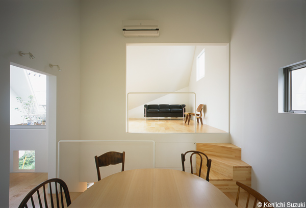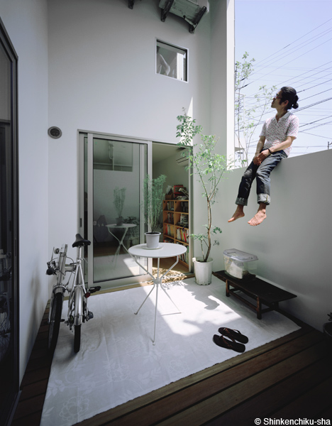 Bílý dřevěný domek v Yokohamě i jeho jsou totiž prostoupeny venkovními plochami. Jeden roh celé plochy střechy byl odříznut, čímž se vytvořil prostor pro střešní okno do horního patia. Zahrady, terasy a atria jsou umístěny tak, aby byly přístupné z každé místnosti; v různých směrech jsou vedeny průhledy a okna, aby bylo možné si užívat pohled na oblohu a na les za domem – nejen z konkrétní místnosti, ale i průhledem přes jinou směrem ven.
