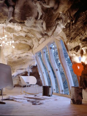 Jádro domu tvoří žebrová konstrukce. Dřevo, které bylo na stavbu užito, pochází z místních zdrojů. Vnitřní borovicové stěny jsou pokryty sobí kůží, takže interiér působí jako historická sluj. Kůže zde však nejsou pouze estetickým doplňkem, ale slouží také jako izolace. Toto řešení bylo inspirováno starou skandinávskou kulturou Sámi, která byla přímo mistrem v recyklaci a využití kůže i kostí ulovených zvířat.