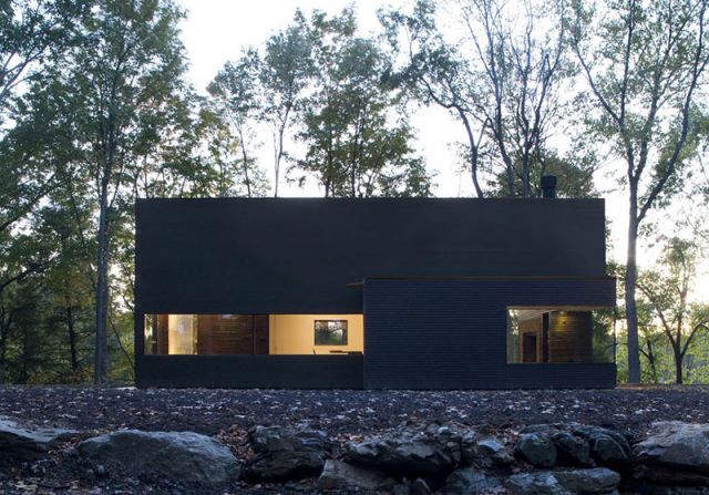 Dřevo bylo zvoleno jako hlavní materiál z několika zřejmých důvodů. Přání investora bylo vytvořit specifické místo, které by na jednu stranu působilo jako příjemné útočiště, na stranu druhou by však bylo co nejvíce provázané se svým okolím. Konstrukce obvodových stěn je tak na několika místech prostoupena mohutným zasklením, které dává majiteli pocit, že se nachází uprostřed lesa. Důraz byl kladen i na preciznost řemeslně provedených detailů, které z jinak velice jednoduchého stavení dělají výjimečnou podívanou.