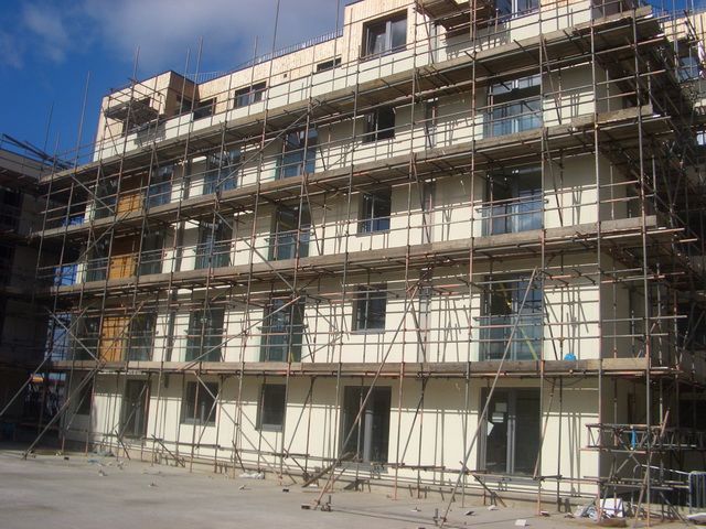 Na přepravu celkového množství 5780 m stěn bylo použito 102 kamionů, které byly na stavbu přistavovány ve frekvenci 2 auta za den. S pomocí jeřábu pak byly jednotlivé kusy montovány dohromady. Předem vyrobené panely byly unikátní ve své kompletnosti – z výrobny vyjížděly s finální fasádní úpravou vnějšího povrchu, vnitřním sádrokartonovým obkladem a se zabudovanými okny a parapety. Těch se do všech částí nakonec použilo neuvěřitelných 180 kusů.
