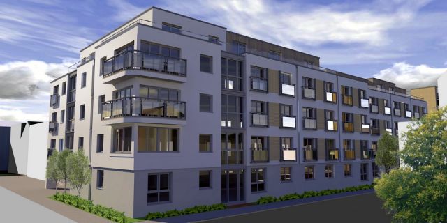 Začátek celkové výstavby se datuje k lednu 2011. Výroba prvních dvou bloků, pojmenovaných A a B, byla zahájena 18. května. K jejich montáži se mohlo přistoupit již 31. května a hrubá stavba tak byla dokončena 22. července. 25 července se ihned pokračovalo s montáží dalšího bloku – budovy D. Ta byla dokončena již 26. srpna. Výstavba bloku C bude zahájena na jaře roku 2012. V celém komplexu bude umístěno celkem 77 bytů, 65 parkovacích stání a 2300 m2 kancelářských prostor.