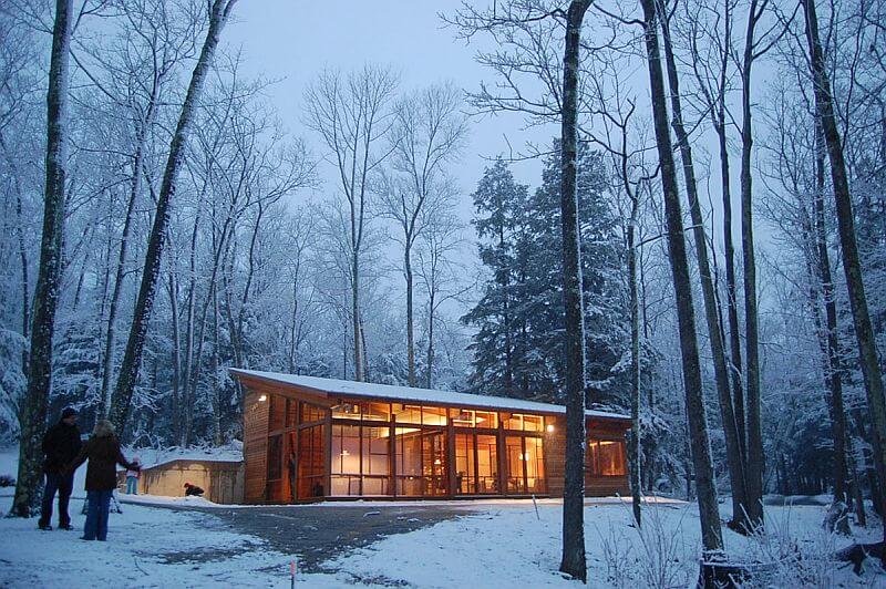 Stavba z pera architektonického ateliéru Maryann Thompson Architects leží v oblasti Berkshire County, severoamerického státu Massachusetts. Její umístění v krásné krajině bylo ale samozřejmě podmíněné mnoha přísnými pravidly, které musela stavba bezvýhradně dodržet. To průběh celé stavby výrazně ztížilo, ale i přesto se chatu nakonec podařilo postavit.
