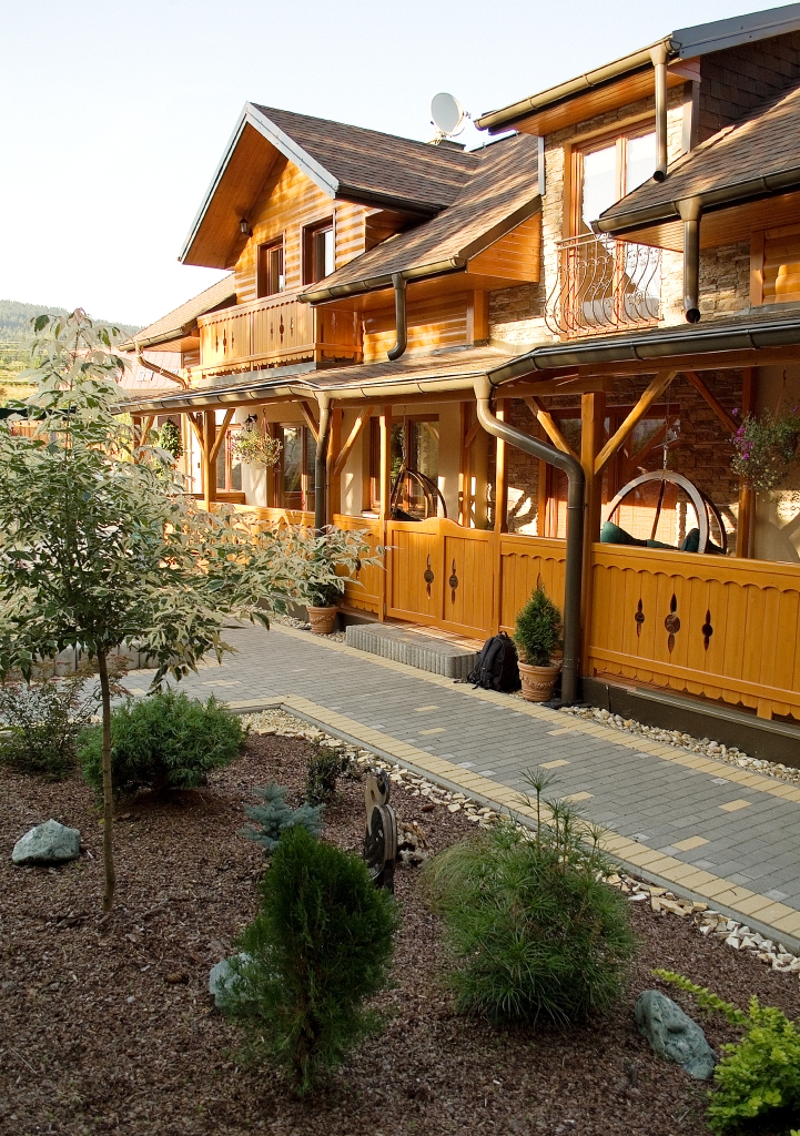 Jako konstrukční systém bylo zvolená sloupková stavba, neboť majitelé dobře znali výhody dřevěných staveb dávno před tím. Během letní sezony není třeba topit a je uvnitř stavby stále příjemné klima. V zimě má dřevostavba obrovskou přednost v tom, že když je zájem o ubytování, není třeba stavbě dodávat ohromné množství tepla pro vytopení na pokojovou teplotu, jako je tomu u zděné stavby – podle majitele postačí maximálně čtyři hodiny. I když se v zimě delší dobu netopí, tak teplota osciluje kolem 10°C. Není se čemu divit – obvodová stěna má tloušťku izolantu 330 milimetrů a okna jsou opatřena trojskly.
