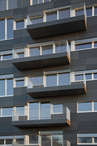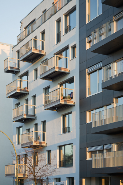 V roce 2012 zrealizovali v hlavním městě Německa Berlíně architekti ze studia Kaden Klingbeil stavbu dvou nových sedmipatrových bytových domů. Průčelí obytných domů bylo zhotoveno z prvků dřevěné rámové konstrukce. Použití dřeva u tak vysokých bytových domů (podlaha nejvyššího patra je téměř 20 metrů nad úrovní terénu) bylo možné díky obložení sádrovláknitými deskami Fermacell s účinnou požární ochranou. Spojení německých profesionálů a kvalitních materiálů opět dokazuje neudržitelnost tuzemských bariér, kladených výškovým dřevostavbám.