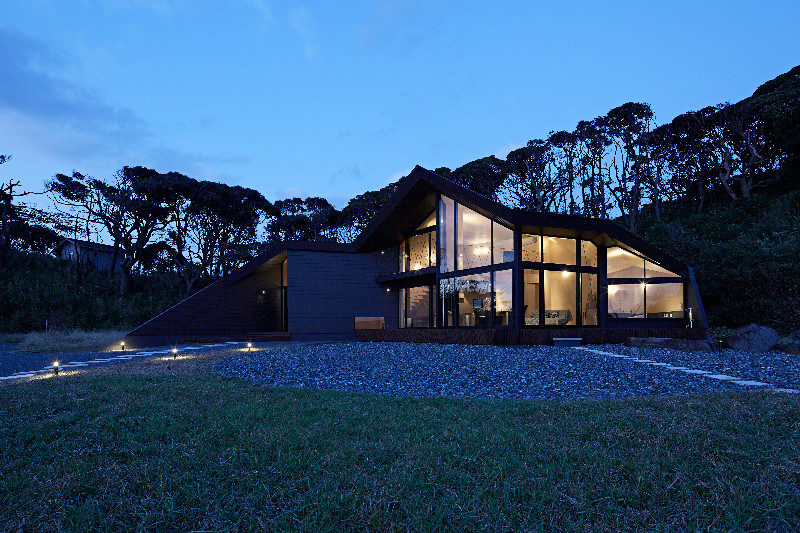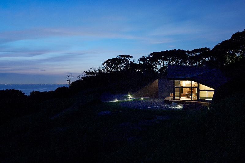 Pozemek umístěný 200 výškových metrů nad Tokijským zálivem, ze zad chráněný útesem se vzrostlou zelení a stromy. K tomu ikonická, prolamovaná černá dřevostavba s panoramatickými výhledy na oceán. To je před rokem dokončená Villa Escargot v japonské prefektuře Chiba.