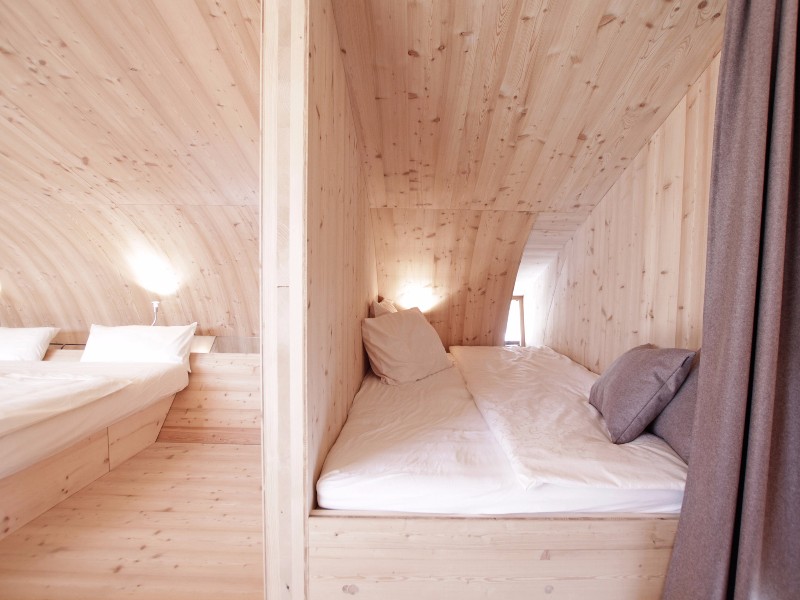 Ať už zde jíte, spíte nebo jen tak relaxujete, v penzionu Ufogel jsou vždy přítomny dvě věci – dřevo a nebesa. Každý, kdo si chce vyzkoušet atmosféru tohoto hnízda na živo, tak může učinit – dům totiž slouží jako penzion manželů Pitterlových. Pobyt v malé vesničce Nussdorf ve Východním Tyrolsku se tak stane nepochybně nezapomenutelným zážitkem.