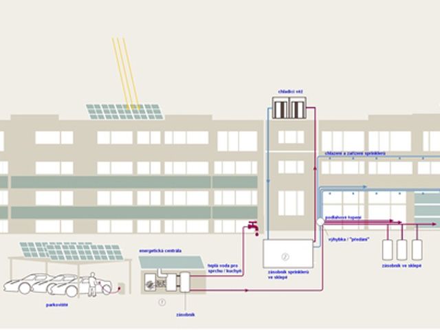 Architektura a výbava budovy byly koncipovány s cílem co nejefektivnějšího používání energií nebo úplného vyloučení použití energií. Solární elektřina, vyráběná na ploše 3150 m2 i úspornost strojů a přístrojů zajišťují, že budova produkuje více energie, než spotřebuje.