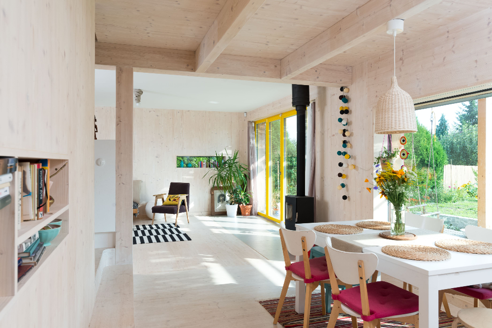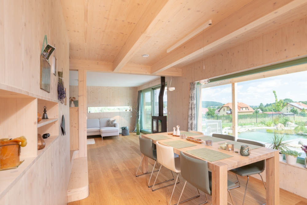 Lukáš Pejsar: Tak jsem se rozhodl oženit, postavit se ženou domeček a založit rodinu. Hledal jsem vhodný systém a hodně se mi líbilo CLT. Postavil jsem tedy dům z CLT, zjistil, že to funguje dobře a následně jsme ve firmě pokračovali dál už jen s tímto konstrukčním systémem. Je pravda, že CLT je dražší než běžná sloupková konstrukce, ale čím blíž jsme hranici pasivního domu, tím jsou tyto konstrukce vhodnější kvůli průvzdušnosti a detailům, které jsou velmi čisté. Panely řežou CNC mašiny a dochází k obrovské eliminaci lidské chyby a nepřesností.