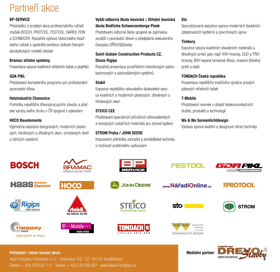 Společnost Haas Fertigbau Chanovice pořádá ve dnech 15. a 16. září 2012 „Dny dřeva ve firmě HAAS". V rámci této akce si budete moci prohlédnout moderní dřevozpracující závod v pošumavských Chanovicích, který Vás jistě zaujme nejen svoji velkolepou rozlohou, ale také zajímavými technologiemi.