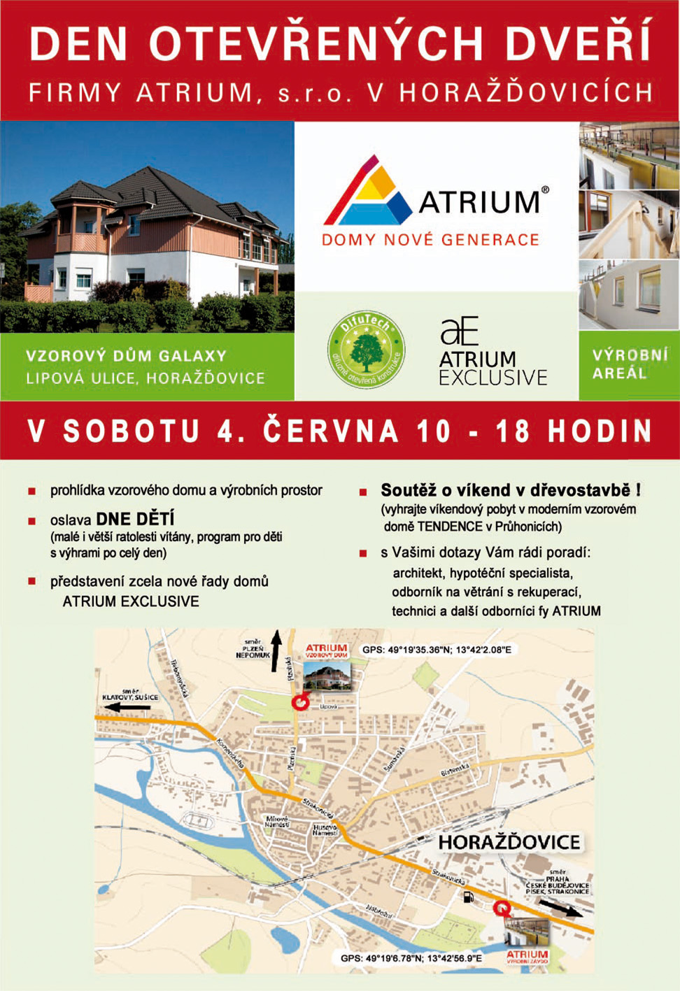 * prohlídka výrobních prostor společnosti ATRIUM s.r.o. a vzorového domu
