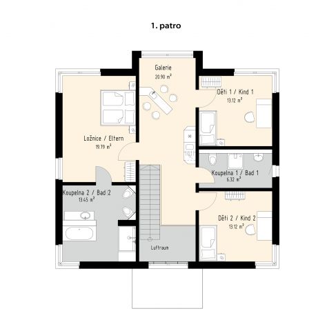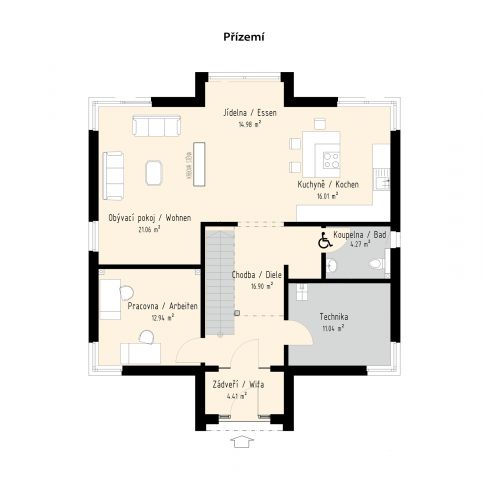 Výrazné úspory energie je dosaženo díky oknům s koeficientem U pouhých 0,7 W/ m2K. Vzorový dům bude pro ukázku funkčnosti alternativních tepelných zařízení vybaven řízeným větráním, solárními kolektory a tepelným čerpadlem. Vzorový dům má dispozici 5 + 1, celkovou podlahovou plochu 190m2 a v základu ho můžete kopupit na klíč za cca 5 200 000 Kč.