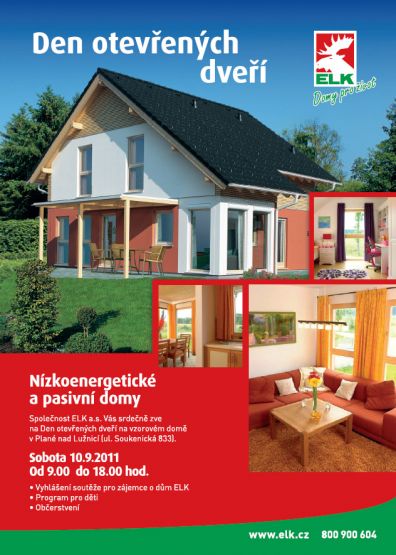 Přijeďte si v sobotu 10. září 2011 vybrat svůj nový dům pro život – těší se na vás tým pracovníků firmy ELK!