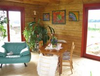 Moderní roubenka v trampské osadě