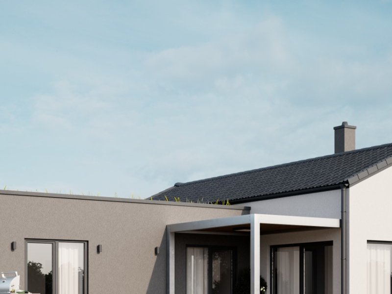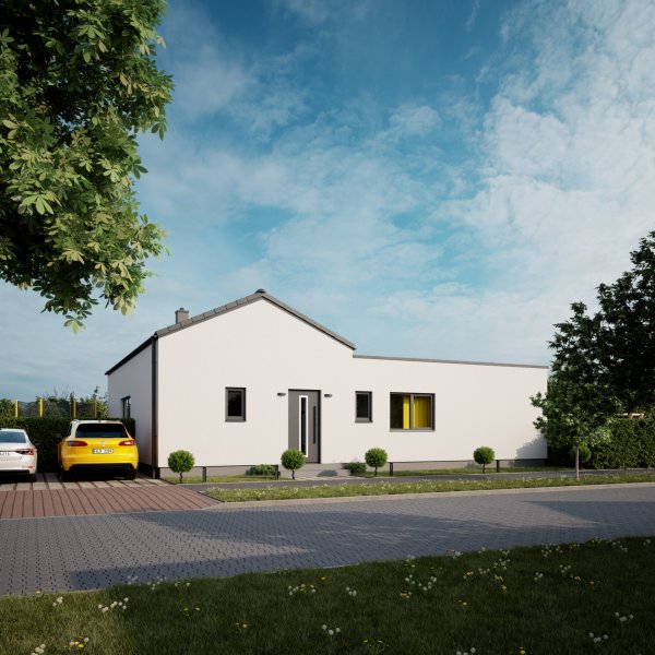 Tento bungalov je ideální volbou pro ty, kdo ocení moderní styl, vzdušnost interiéru a dostatek prostoru jak uvnitř, tak venku. Velkorysé místnosti světlý interiér a různé typy střech dodávají domu výjimečnost.