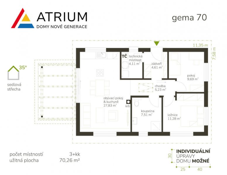 | Sklon střechy: | 35° |