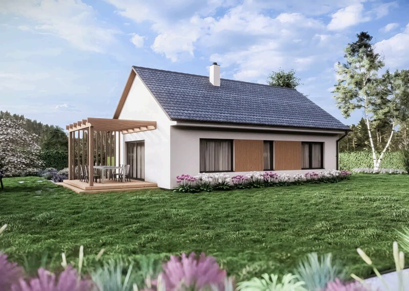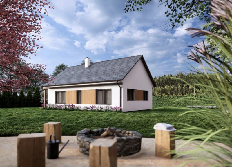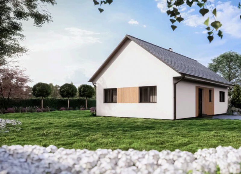Malý, ale promyšlený přízemní dům vás okouzlí svou jednoduchostí a pohodlím. Najdete v něm dva samostatné pokoje a prostornou kuchyň propojenou s obývákem, kde si můžete vytvořit i kouzelné sedací okno s výhledem. Díky velkému vstupu z obýváku se obytný prostor přirozeně rozšiřuje na zahradu, kde si můžete vychutnat ranní kávu nebo večerní posezení s přáteli.