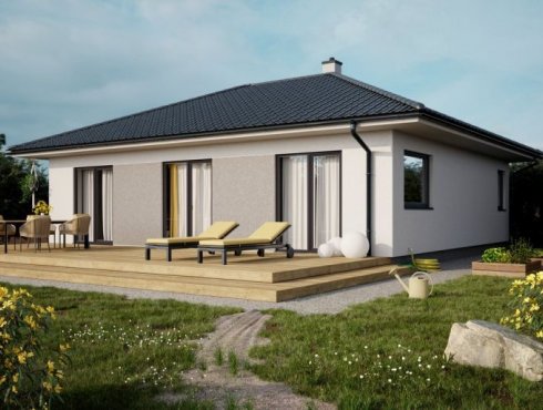 Je ideální pro páry na důchod nebo menší rodiny, které hledají cenově dostupné bydlení. Bungalov může být vybaven valbovou nebo plochou střechou, která dodá domu ještě modernější vzhled. Dům má přístup na terasu, která láká k venkovnímu posezení a trávení času na zahradě.
