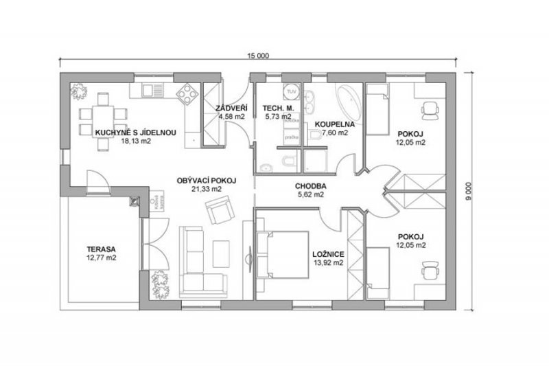 Přízemní rodinná dřevostavba pro 4-5 osob. Je vhodná do nízké zástavby rodinných domů. Svým vzhledem je možné tuto dřevostavbu umístit jak do nové, tak i do staré zástavby.