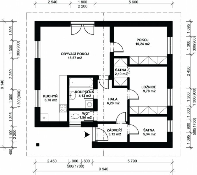 Členitější dřevostavba s jasnou snahou využití vnitřního prostoru do posledního místa. Velikost úložných prostor (šaten a šatních skříní) by mohl závidět i leckterý větší dům. Kryté zápraží skýtá dostatek místa, třeba na kočárek...
