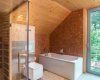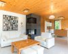 Konstrukční systém: masivní dřevěné panely KLH, stěny i stropy v pohledové kvalitě. Jedinečné řešení trojúhelníkové vikýře v pohledové kvalitě.