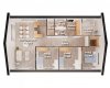 Novinkou v kategorii domů nad 100m2 Bungalov 12+ s dispozicí 4+kk. Dům je zvětšená varianta Bungalovu 12. Obytný prostor je propojen s okolní zahradou velkým posuvným HST portálem, který společně s ostatními francouzskými okny předurčuje u tohoto domu ideální místo pro terasu. Okna a vstupní dveře mají ve standardu jednostranný antracitový dekor, který v našem návrhu koresponduje se střešní krytinou.