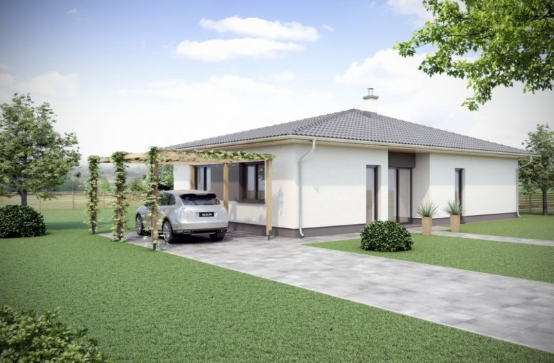 Nízkoenergetický bungalov 120, je navržen jako velmi praktický dům s maximálně využitým prostorem. Dispozičně je navržen, jako 4+KK. S velkým obývacím pokojem a krytou terasou, kde můžete trávit příjemné chvíle s rodinou i v období deště. Tento dům nabízí komfortní bydlení pro 4 člennou rodinu, s menšími finančními nároky na realizaci. Dům může být i bezbariérový.