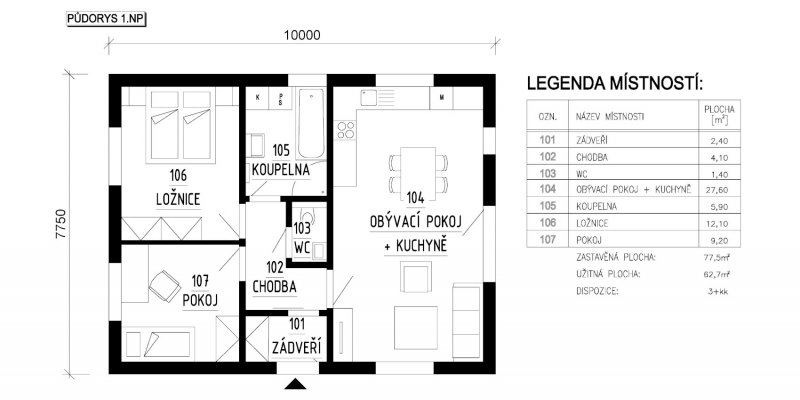 | Dispozice: | 3+kk / 3+1 |