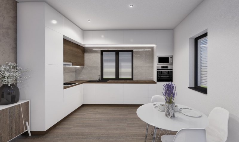 Rodinný dům CLASSIC 63 představuje rozměrově menší nízkoenergetický dům jednoduchého tvaru, který potřebuje pouhých 77,5 m2 zastavěné plochy, aby nabídl dostačujících 62,7m2 užitného prostoru. Logicky uspořádané dispoziční řešení 3+kk dokáže uspokojit až čtyřčlennou rodinu, která bude mít stále zajištěnou oddělenou denní i noční klidovou zónu.