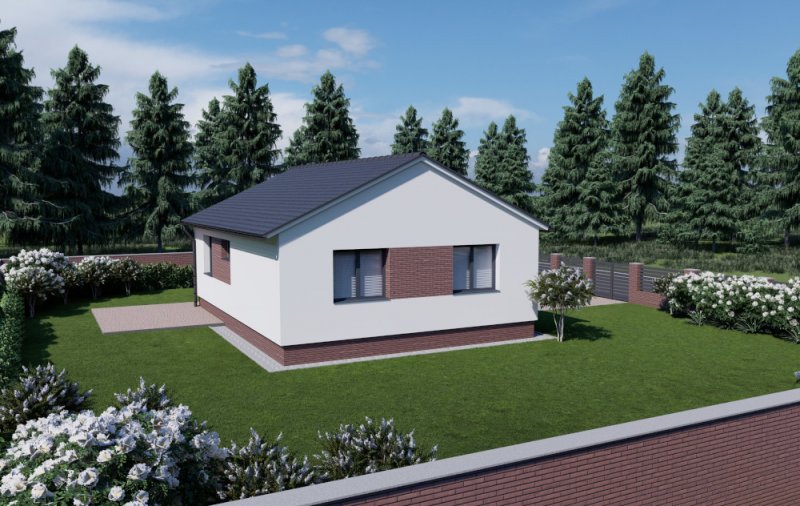 Nízkoenergetický přízemní rodinný dům CLASSIC 63 je postaven ze stavebního systému PURLIVE a může být dodán ve variantě pravá nebo levá, to znamená, že jej lze zrcadlově otočit dle orientace pozemku.