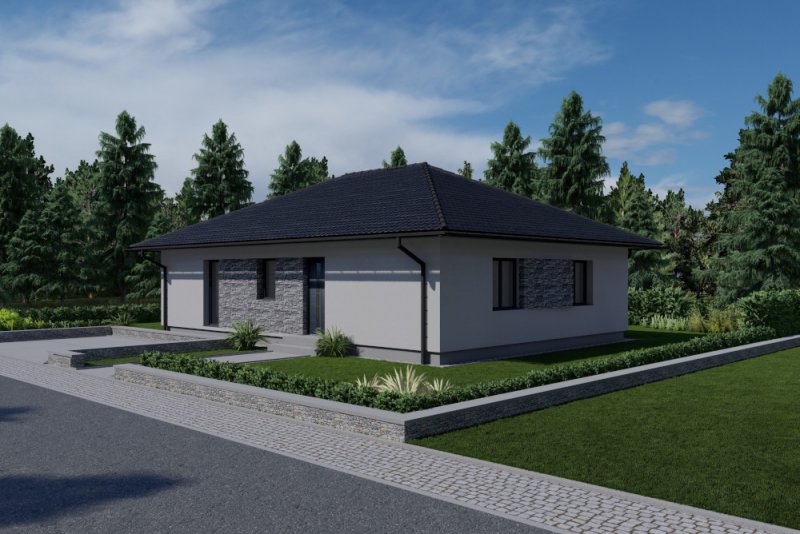 Nízkoenergetický přízemní rodinný dům CLASSIC 93 je postaven ze stavebního systému PURLIVE a může být dodán ve variantě pravá nebo levá, to znamená, že jej lze zrcadlově otočit dle orientace pozemku.