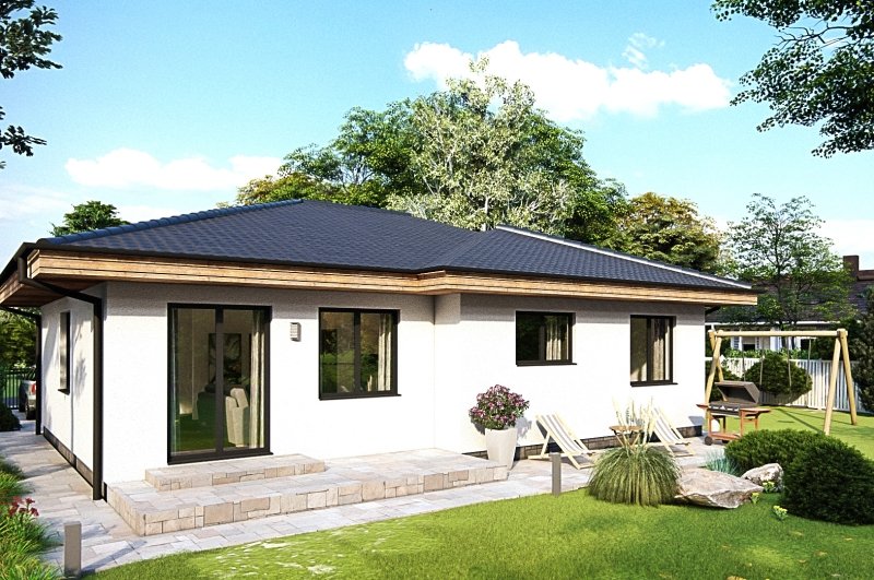 Přízemní dům, který splňuje všechny nároky pro menší rodinu.