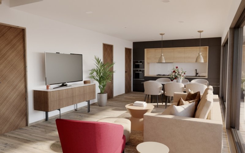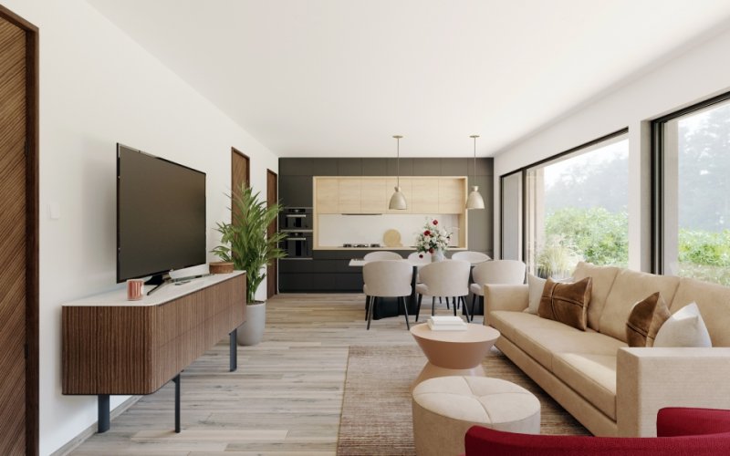 Propojení kuchyně, jídelny a obývacího pokoje s přímým vstupem na terasu a výhledem do zahrady zhmotňuje naše sny a představy o moderním bydlení. V přízemí pak najdete také hlavní ložnici se samostatným vstupem na zahradu, která je však skryta hlavnímu dění a poskytuje tak více soukromí a klidu.