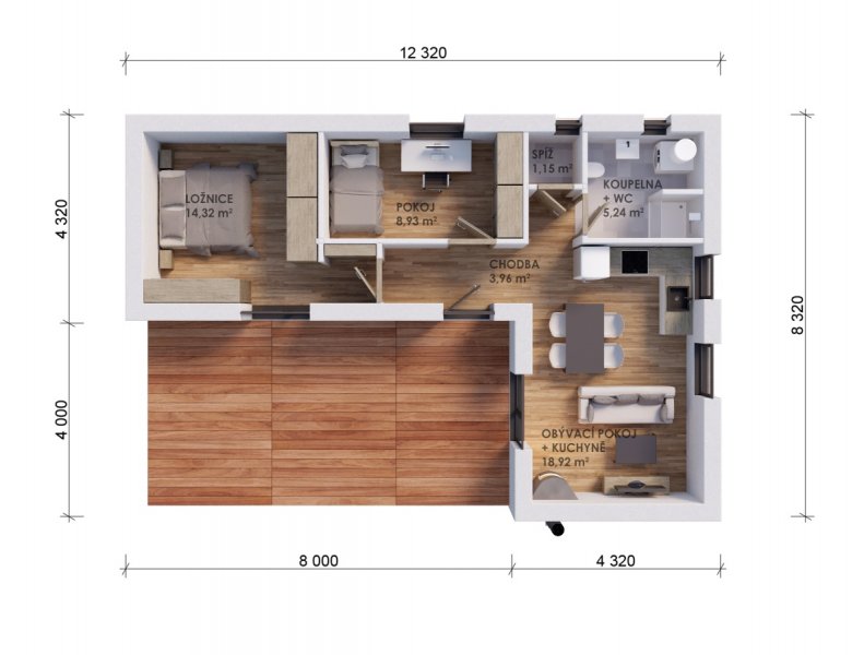 | Cena dřevostavby na klíč (vč. DPH): | 2 626 600 Kč Spočítat financování |