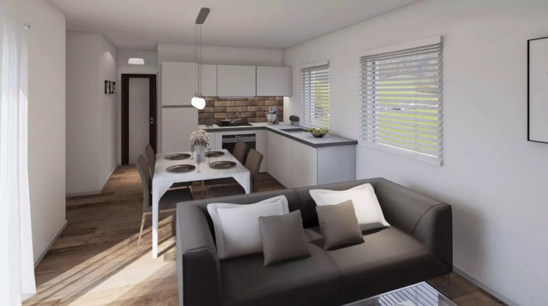 Dispozice: Objekt má jedno nadzemní podlaží s jednou jednotkou 3+kk – zádveří s chodbou, obývací pokoj s kuchyňským koutem, koupelna, ložnice a pokoj.
