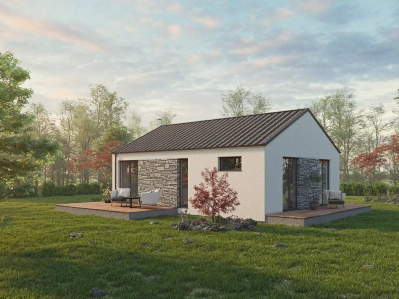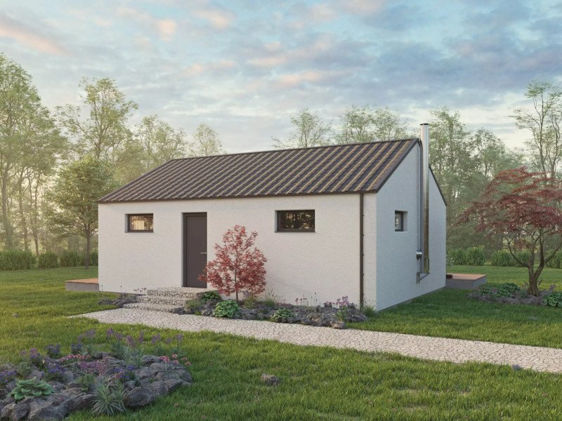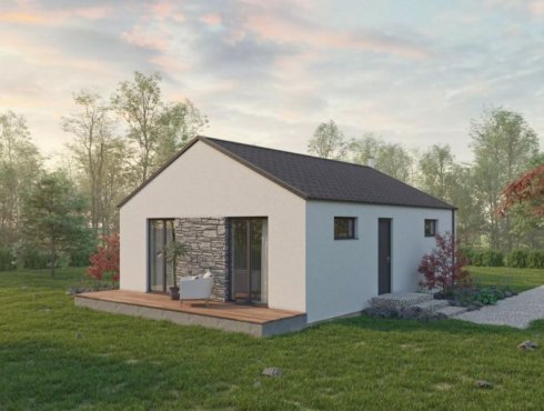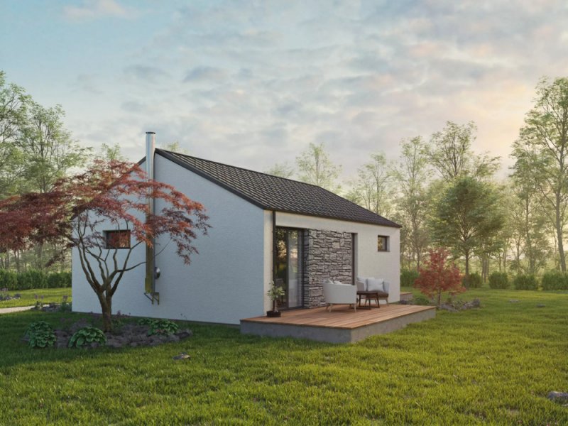 Jednoduchý domek pro menší rodinu nebo pár je navržen tak, aby i na relativně malé podlahové ploše bylo vše potřebné. Svým stylem zapadá do vesnické i městské výstavby a je vhodný i na malé pozemky.